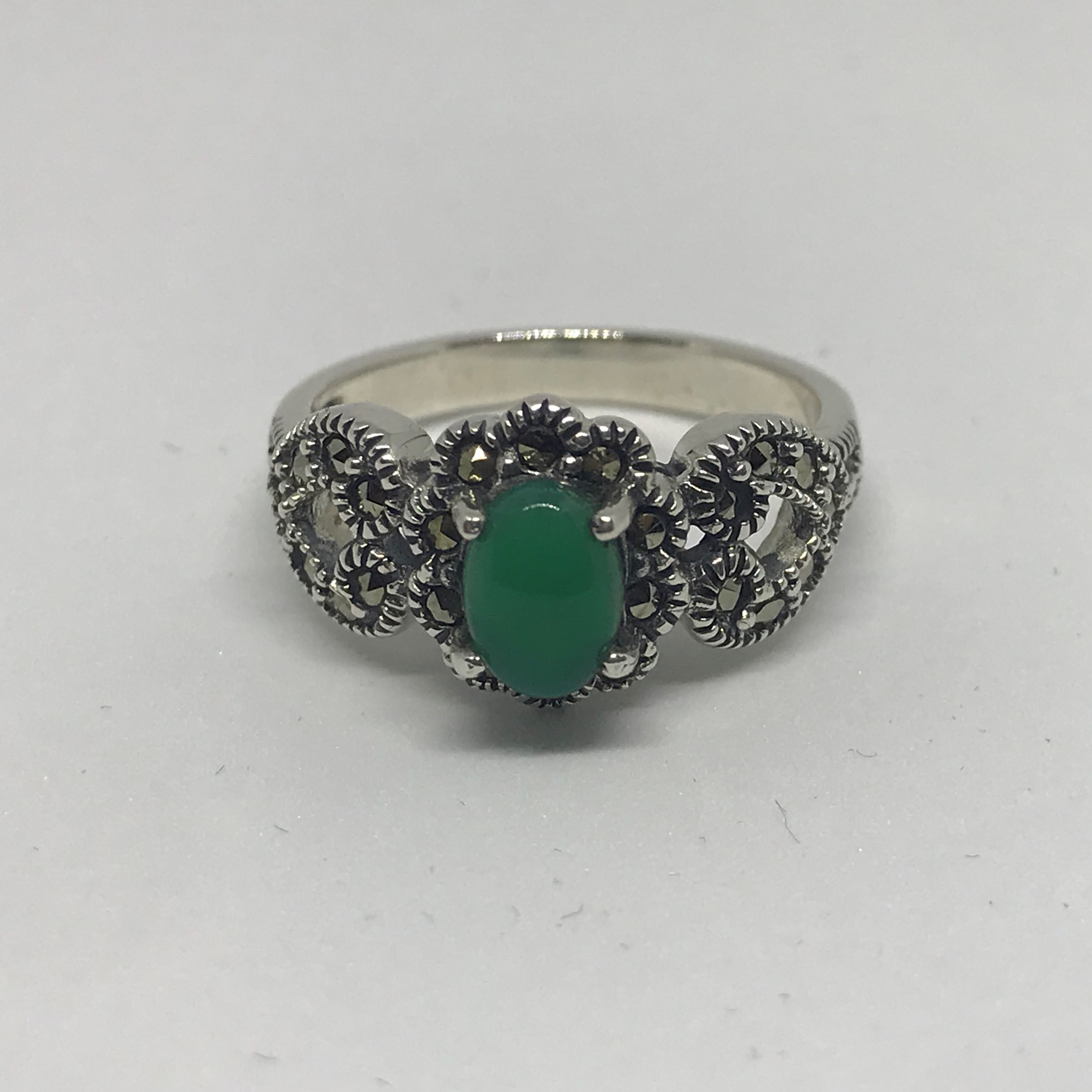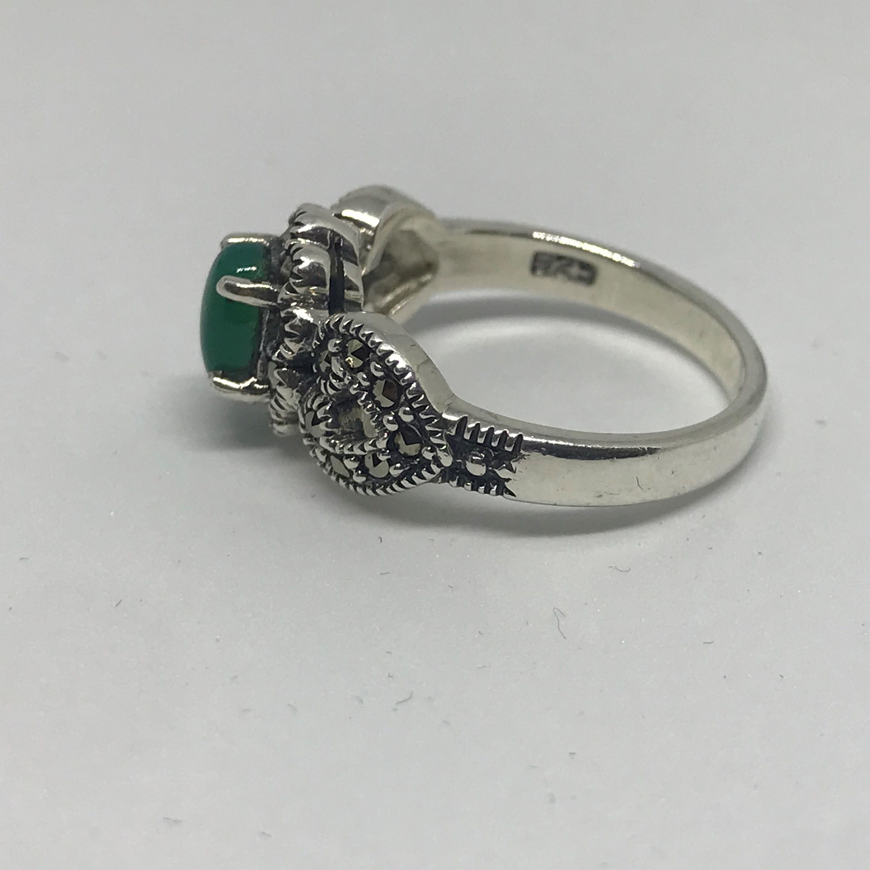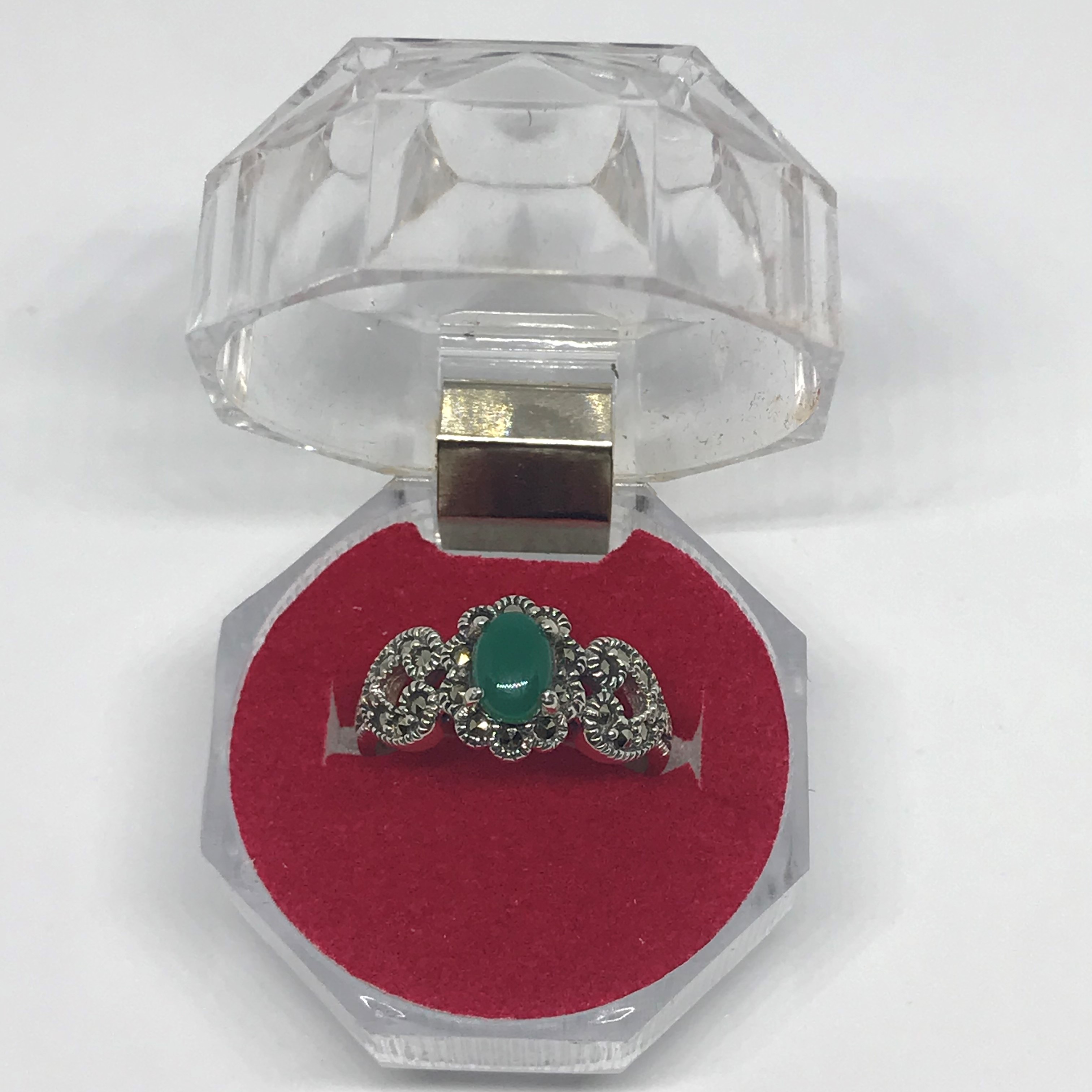 An Exquisite 925 sterling silver ring with a Green Aqeeq stone.