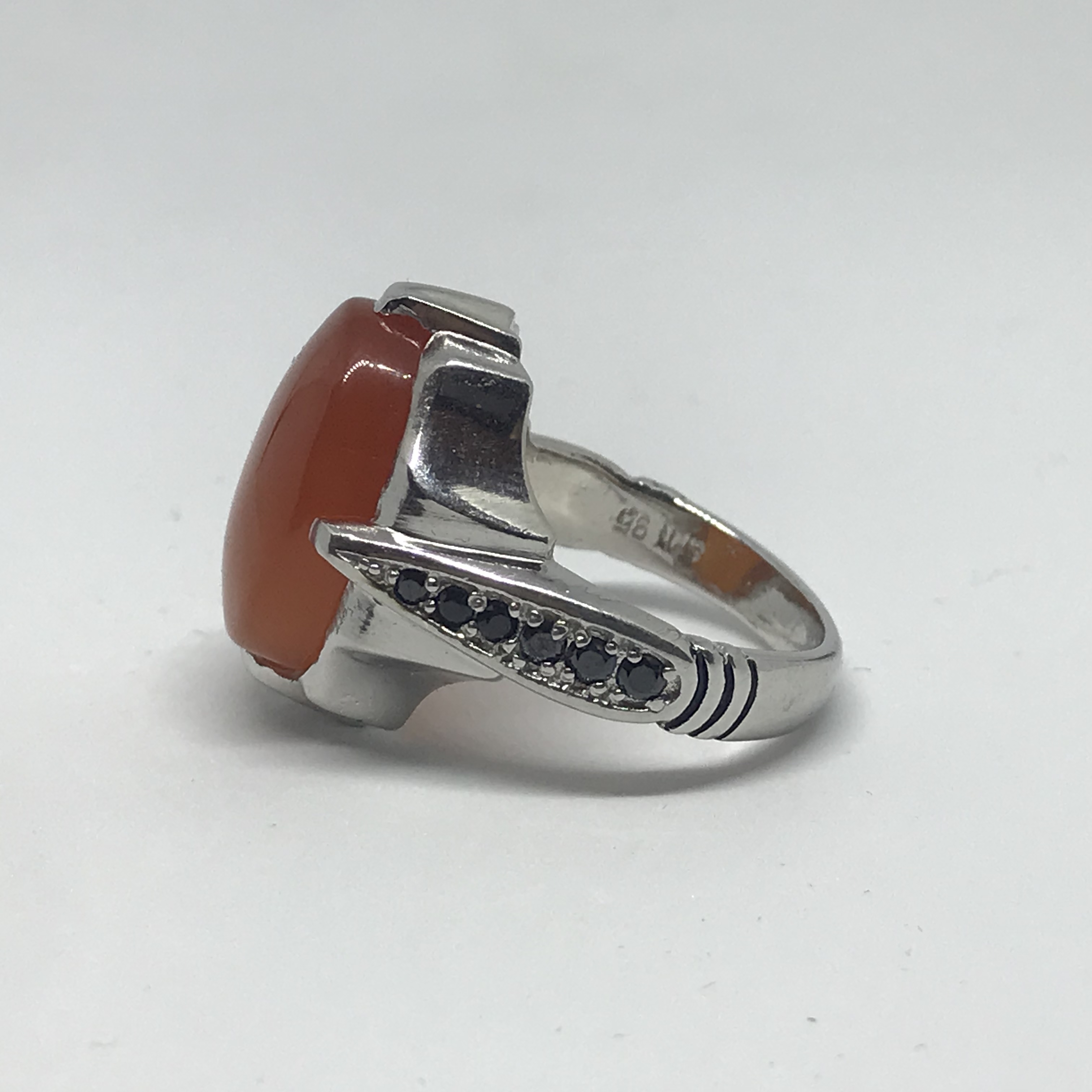 An Exquisite mens 925 sterling silver ring with a Aqeeq stone.